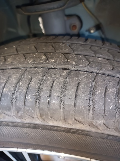 写真の様なタイヤのひび割れの状態だと、今すぐ交換した方が良いですか?4月に車検なのでそれまでこの状態で運転をしていいか知りたいです
