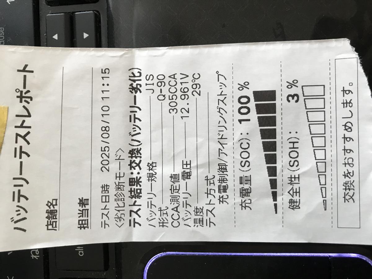 某大手チェーンでオイル交換した際、バッテリーテストをされました。