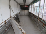 ☆運転席側ウイングパネルはステンレス製のパンチングメタル取付・約300cmおきに間仕切り稼働柵、四隅には水抜き穴、家畜の固定フックは片側7個の計14個付いています。リヤドアフレーム(門口)と最後部の扉はステンレス製を使用・1番・2番扉の問口(骨格)とパンチメタルはステンレスを使用し扉本体はスチール製・床材はアルミ製の縞鋼板を取付しています。最大積載量は抹消前の数値です。新規車検時は減トンの可能性有ります。