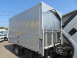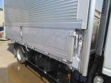 ☆上物はトランテックス製、ラッシングレール2段、アオリには開閉補助装置付きで作動良好です。リヤは3枚扉の観音開きです。