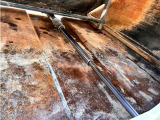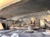 「ボディ下部錆止め塗装」 雪道には凍結防止剤を撒くことが多く、放置するとボディ下部が腐食していきます。これに対処するため、ボディ下部に錆び止めを塗ります。