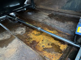 「ボディ下部錆止め塗装」 雪道には凍結防止剤を撒くことが多く、放置するとボディ下部が腐食していきます。これに対処するため、ボディ下部に錆び止めを塗ります。