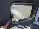 左ドア下、安全確認窓の内側カバー割れ有り。