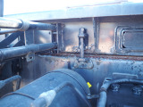 「ボディ下部錆止め塗装」 雪道には凍結防止剤を撒くことが多く、放置するとボディ下部が腐食していきます。これに対処するため、ボディ下部に錆び止めを塗ります。