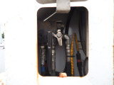大容量の工具箱、広い収納スペースの荷台が付いた車両になります。
