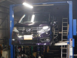 2柱リフト1台、リフト1台完備で点検、メンテナンス、カスタムまでお客様のカーライフをサポート致します