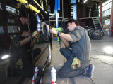 「ボディ下部錆止め塗装」 雪道には凍結防止剤を撒くことが多く、放置するとボディ下部が腐食していきます。これに対処するため、ボディ下部に錆び止めを塗ります。