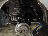 「ボディ下部錆止め塗装」 雪道には凍結防止剤を撒くことが多く、放置するとボディ下部が腐食していきます。これに対処するため、ボディ下部に錆び止めを塗ります。