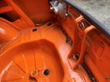 「ボディ下部錆止め塗装」 雪道には凍結防止剤を撒くことが多く、放置するとボディ下部が腐食していきます。これに対処するため、ボディ下部に錆び止めを塗ります。