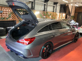CLA45シューティングブレイクが入庫しました。パノラミックルーフのオプション装備を携え、AMGならではの迫力のある仕様になっています。