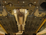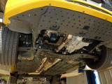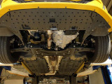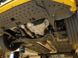 「ボディ下部錆止め塗装」 雪道には凍結防止剤を撒くことが多く、放置するとボディ下部が腐食していきます。これに対処するため、ボディ下部に錆び止めを塗ります。
