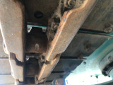 「ボディ下部錆止め塗装」 雪道には凍結防止剤を撒くことが多く、放置するとボディ下部が腐食していきます。これに対処するため、ボディ下部に錆び止めを塗ります。