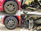 「ボディ下部錆止め塗装」 雪道には凍結防止剤を撒くことが多く、放置するとボディ下部が腐食していきます。これに対処するため、ボディ下部に錆び止めを塗ります。