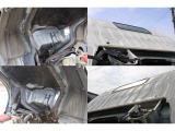 「ボディ下部錆止め塗装」 雪道には凍結防止剤を撒くことが多く、放置するとボディ下部が腐食していきます。これに対処するため、ボディ下部に錆び止めを塗ります。