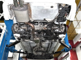 「ボディ下部錆止め塗装」 雪道には凍結防止剤を撒くことが多く、放置するとボディ下部が腐食していきます。これに対処するため、ボディ下部に錆び止めを塗ります。