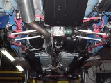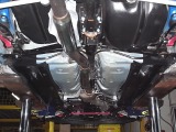 「ボディ下部錆止め塗装」 雪道には凍結防止剤を撒くことが多く、放置するとボディ下部が腐食していきます。これに対処するため、ボディ下部に錆び止めを塗ります。