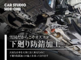 「ボディ下部錆止め塗装」 雪道には凍結防止剤を撒くことが多く、放置するとボディ下部が腐食していきます。これに対処するため、ボディ下部に錆び止めを塗ります。