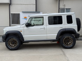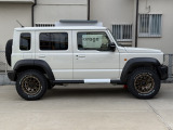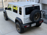 令和7年式ジムニーノマドFC 5MT アークティックホワイトパール登録済み未使用車入庫いたしました。足回り、ホイールはマッドヴァンス08ブロンズ タイヤはBFグッドリッチ オールテレーンT/A K03 225/70R16です。 もちろん背面スペアタイヤも変更しており、背面タイヤブラケットはショウワガレージ制です。 グリルも変更、細かいところまで言うとホイールナットもホイール色に合わせてブロンズに変えてあります。 フロアマットはノマド純正のサイマーク絨毯タイプを新品お付けします。 マニュアルですので運転も楽しめます。 リフトアップ無しの純正車高です。 その他、希望カスタムございましたらご要望、お問い合わせお待ちしております。