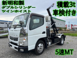 【三菱ふそうキャンターアームロール新明和製ダブルシリンダー・ツインホイスト積載3t5速マニュアル予備検査付き】