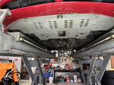 「ボディ下部錆止め塗装」 雪道には凍結防止剤を撒くことが多く、放置するとボディ下部が腐食していきます。これに対処するため、ボディ下部に錆び止めを塗ります。