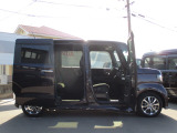 プレミアムベルベットパープル・パールのN-BOXカスタム Lです。Honda SENSINGを装備。シートヒーターが付いています。