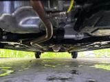 「ボディ下部錆止め塗装」 雪道には凍結防止剤を撒くことが多く、放置するとボディ下部が腐食していきます。これに対処するため、ボディ下部に錆び止めを塗ります。